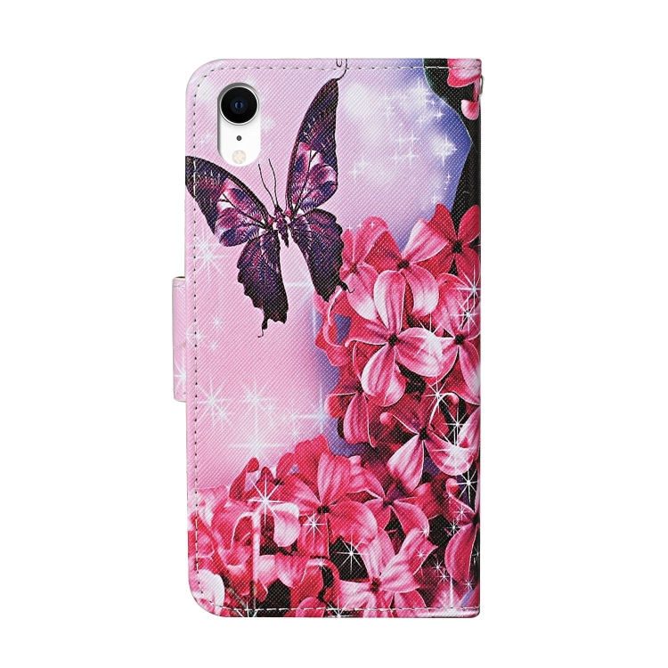 Funda de Cuero para iPhone Xr con Tapa Horizontal, Soporte y Ranuras para Tarjetas (Mariposa de Flor Roja)
