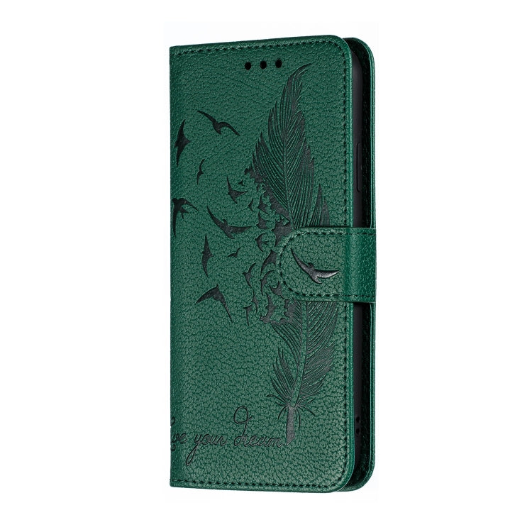 Funda de Cuero para iPhone Xr Patrón de Plumas Litchi Textura con Tapa Horizontal Billetera Soporte Ranuras para Tarjetas (Verde)