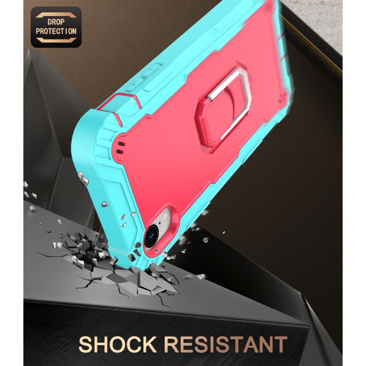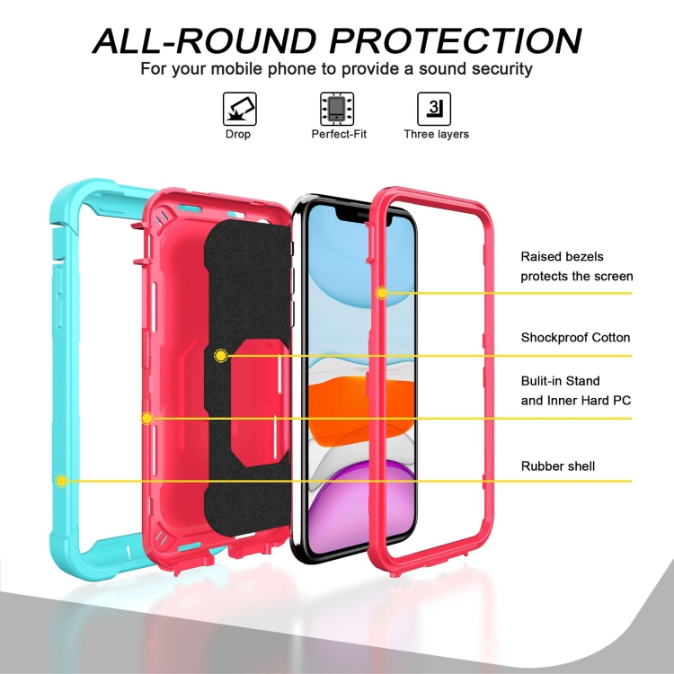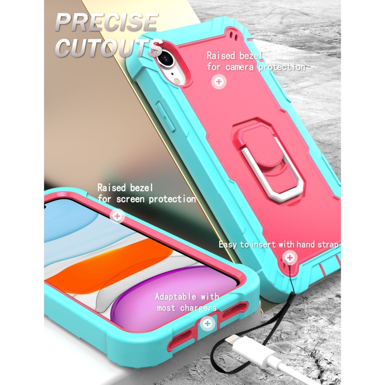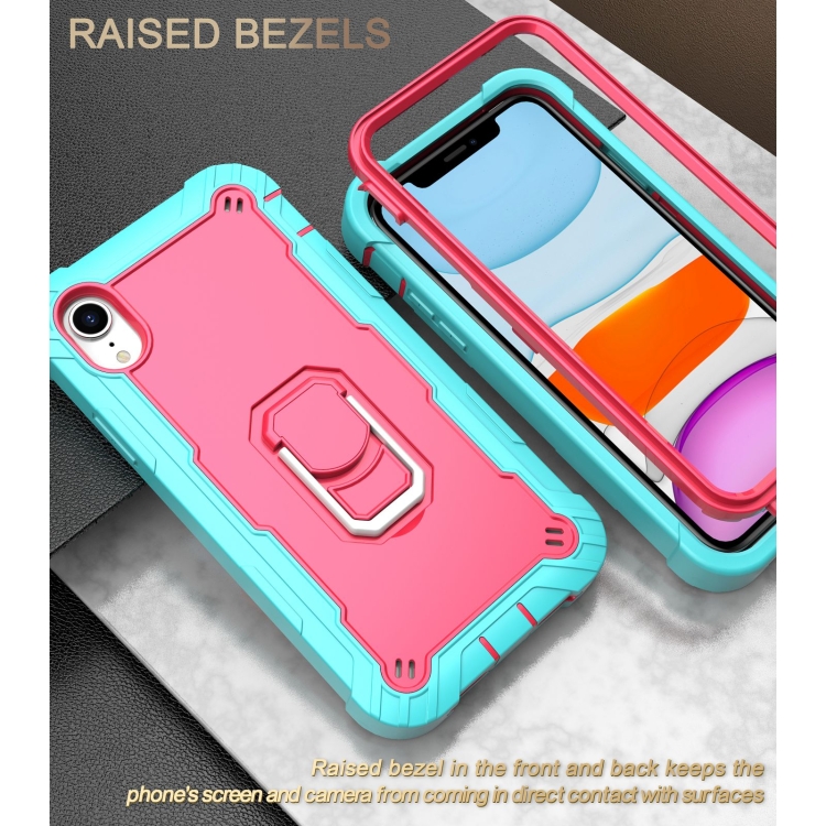 Funda para iPhone Xr PC + Goma 3 Capas a Prueba de Golpes con Soporte Giratorio (Verde Menta + Rosa Roja)