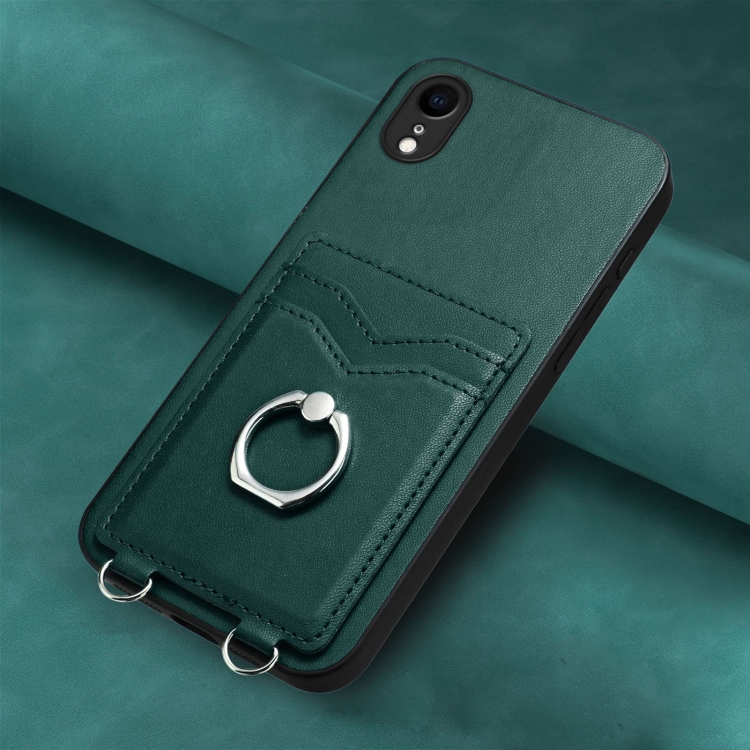 Estuche para teléfono iPhone Xr R20 con soporte para tarjeta con anillo (Verde)