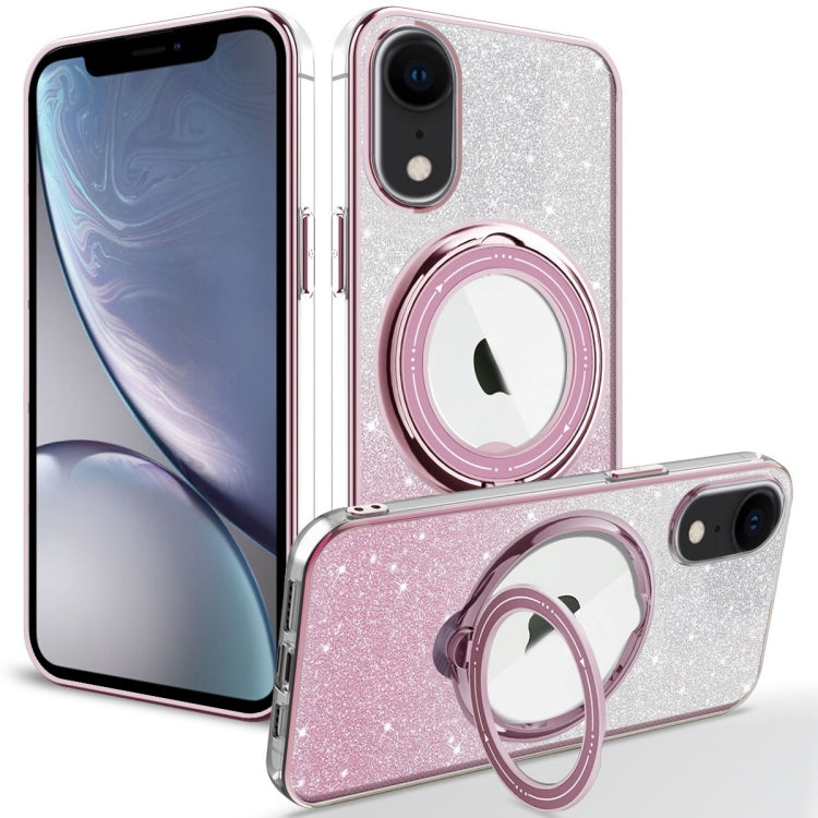 Estuche para Teléfono iPhone Xr Rotación Magsafe Holder TPU con Brillo Degradado (Rosa)