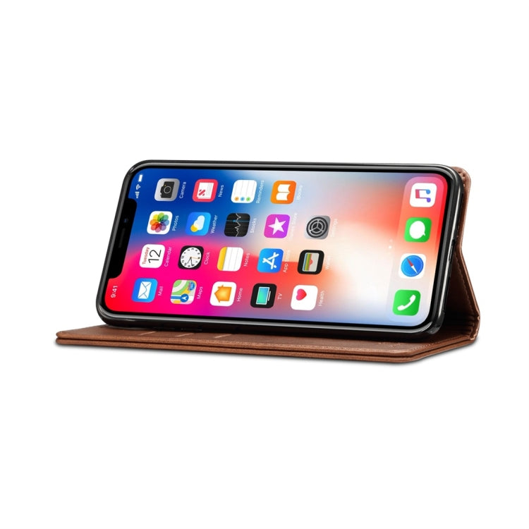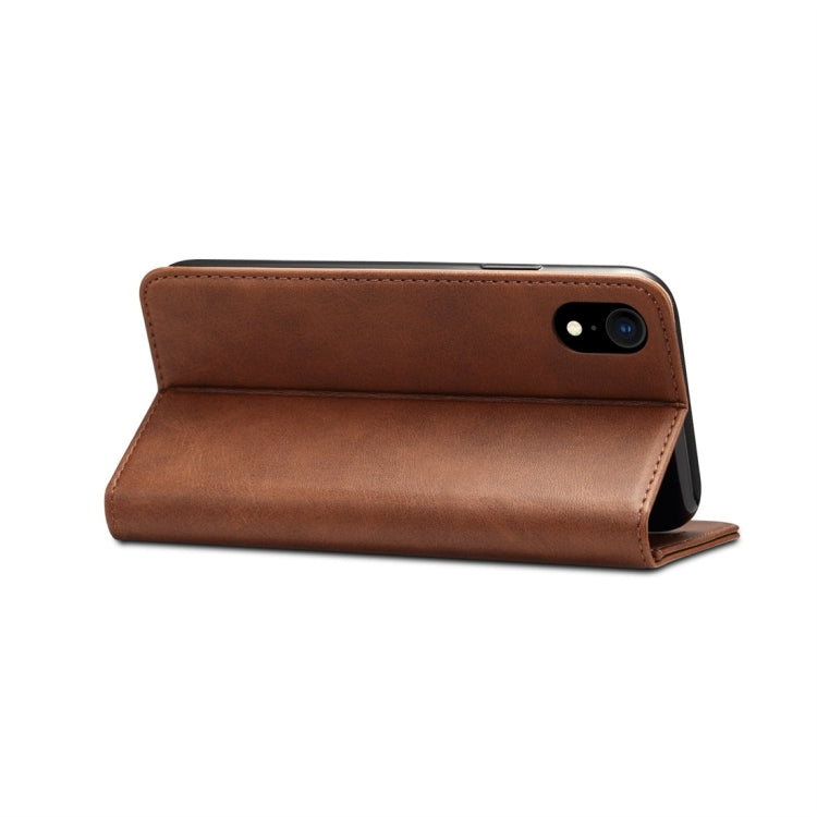 Funda de Cuero Suteni Calf Texture para iPhone Xr con Tapa Horizontal Soporte Ranuras y Billetera (Café)