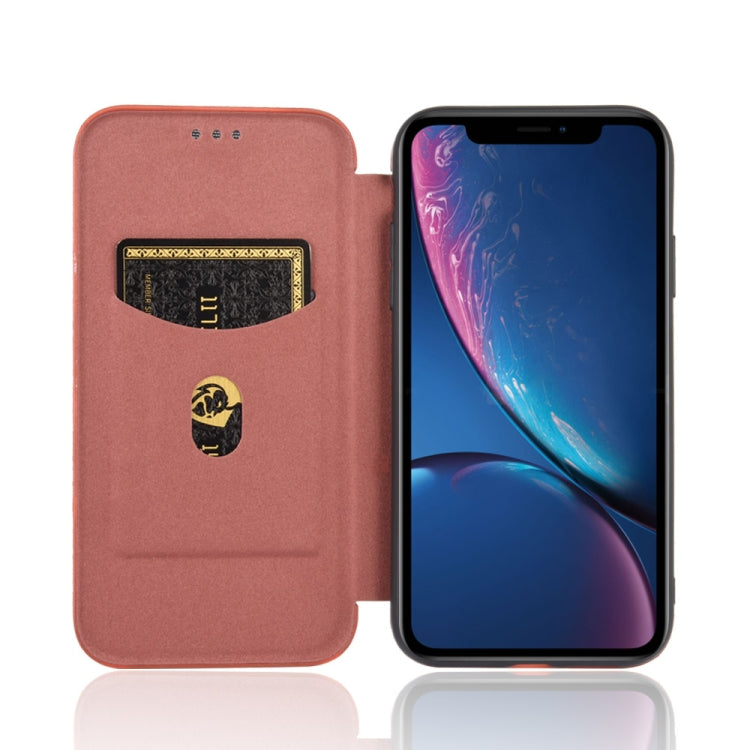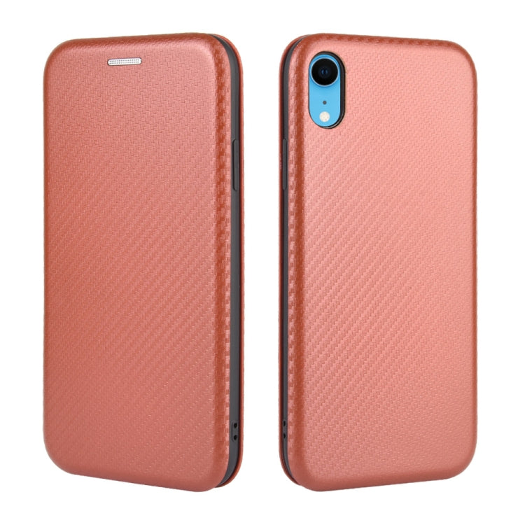 Funda para iPhone Xr Textura Fibra de Carbono Flip Horizontal TPU PC Cuero PU Ranura Tarjeta (Marrón)
