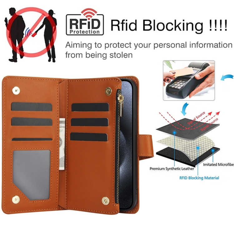 5. Función de billetera multitarjeta: múltiples ranuras para tarjetas y bolsillos tipo billetera con cremallera, los compartimentos para efectivo pueden almacenar sus tarjetas de crédito y billetes pequeños diarios.