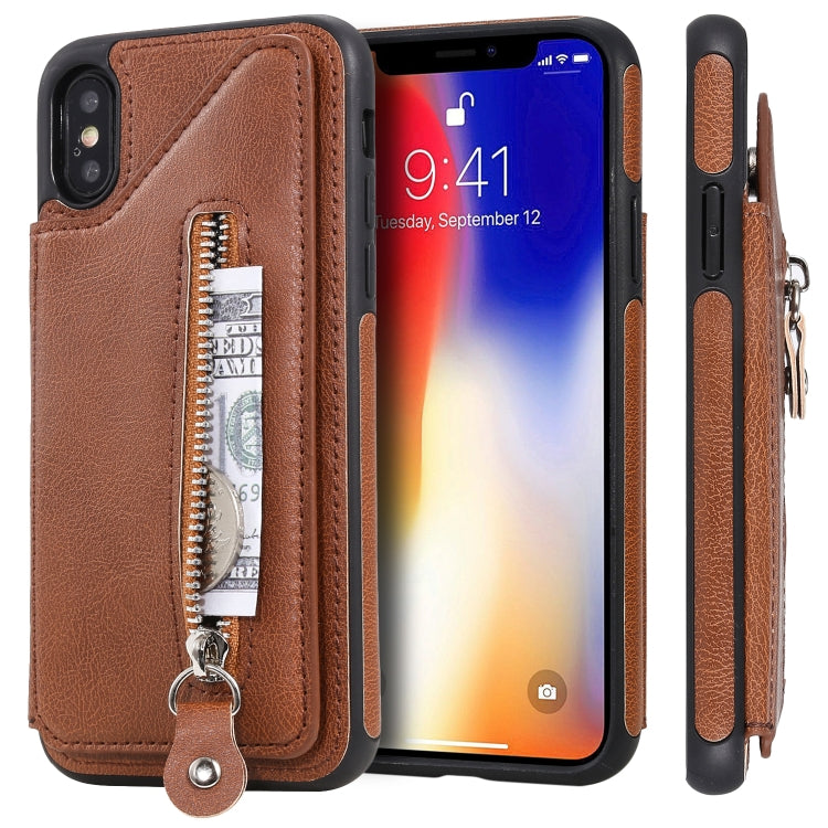 Funda Protectora para iPhone Xs con Cremallera Doble Hebilla a Prueba de Golpes (Marrón)