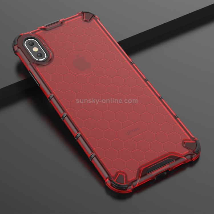 Funda Protectora para iPhone Xs Max Honeycomb PC + TPU a Prueba de Golpes (Rojo)