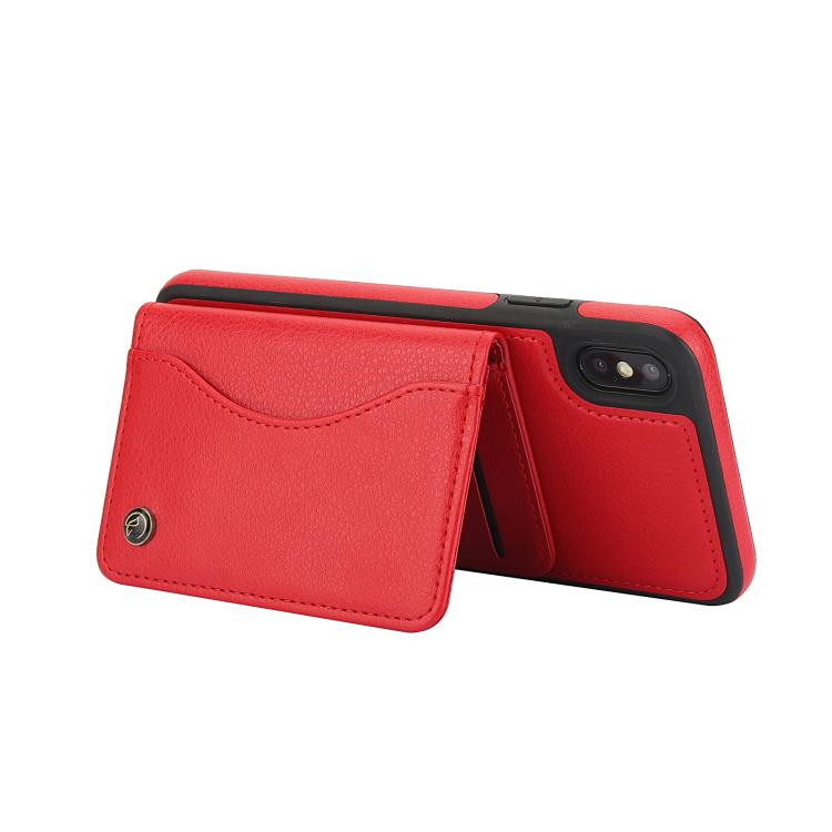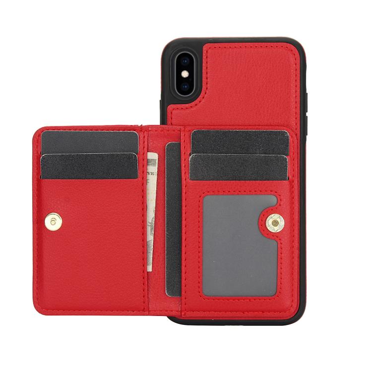 Funda de Cuero Awquer para iPhone Xs Max con Tapa Horizontal para Tarjetas y Soporte (Rojo)