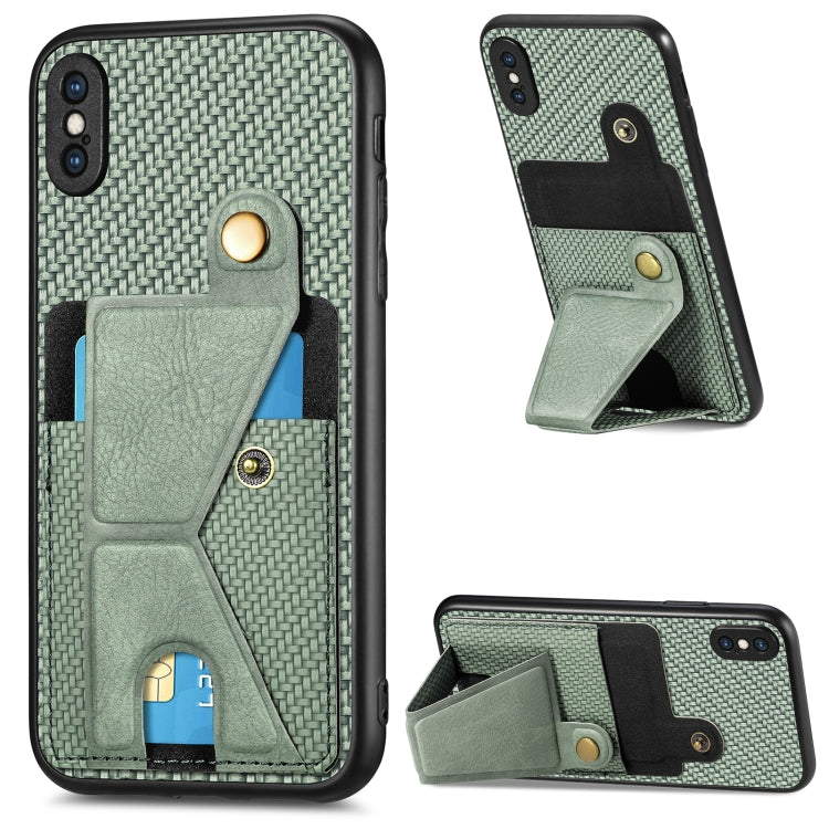 Funda para iPhone Xs Max Carbon Fiber Wallet Flip Card con Soporte en Forma de K (Verde)