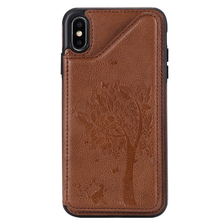Estuche Protector iPhone Xs Max Cat Tree Relieve Patrón a Prueba de Golpes con Ranuras para Tarjetas (Marrón)