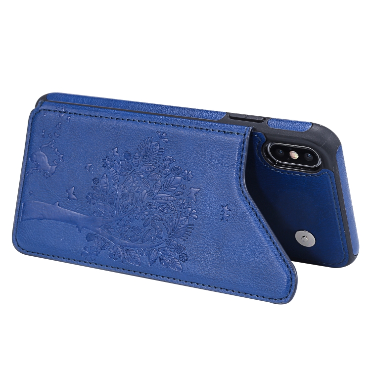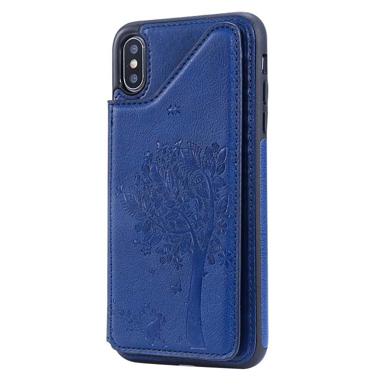 Estuche protector iPhone Xs Max Cat Tree relieve patrón a prueba de golpes con ranuras para tarjetas y soporte (Azul)