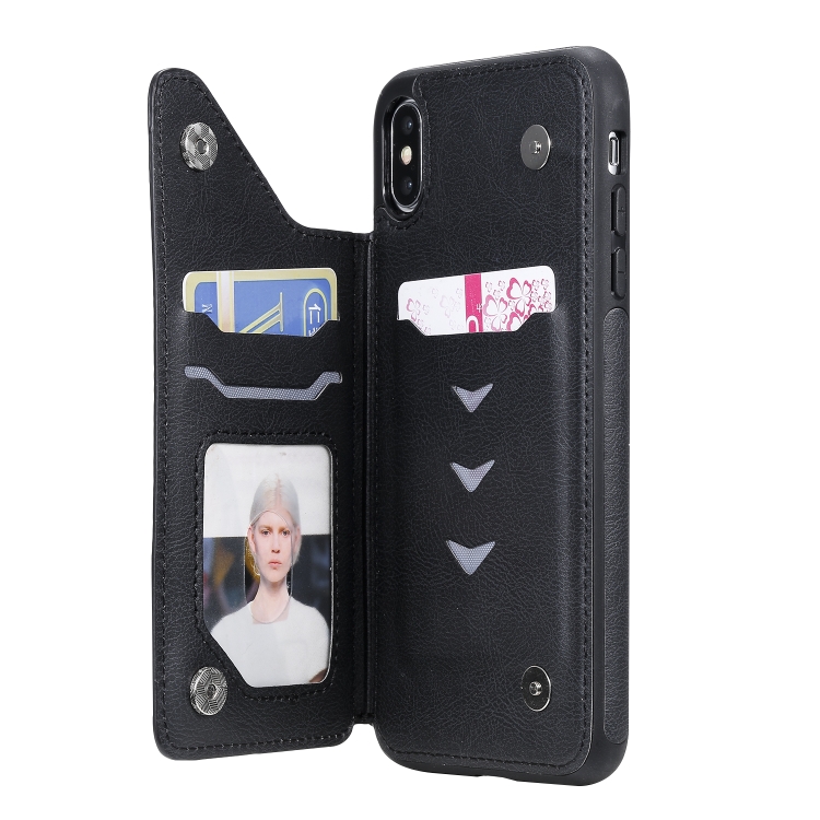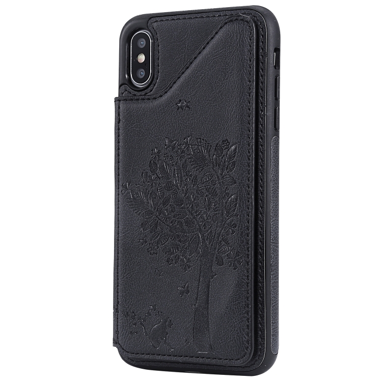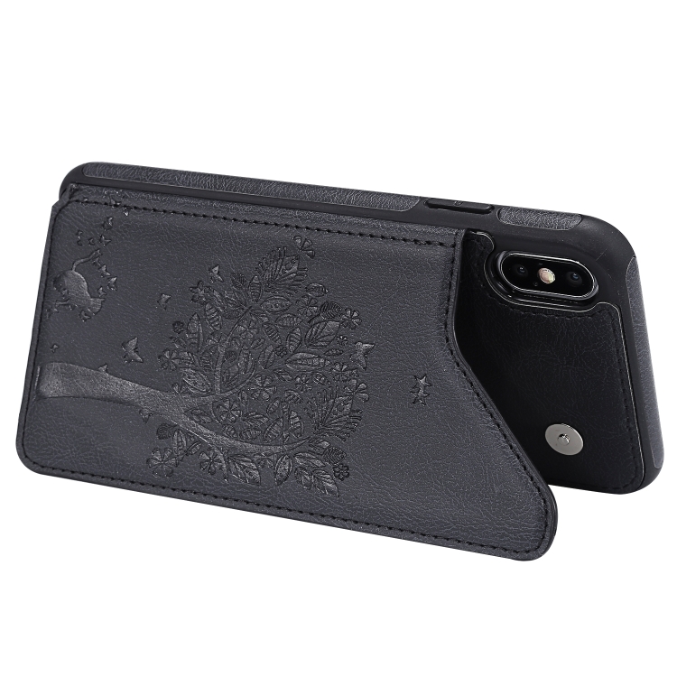 Estuche protector iPhone Xs Max Cat Tree relieve patrón con ranuras para tarjetas y soporte (Negro)