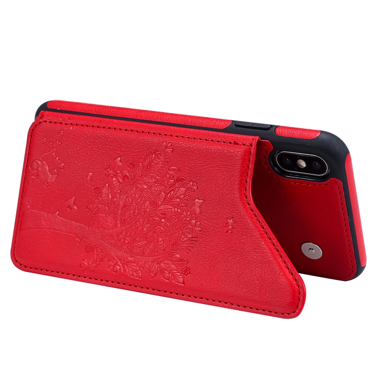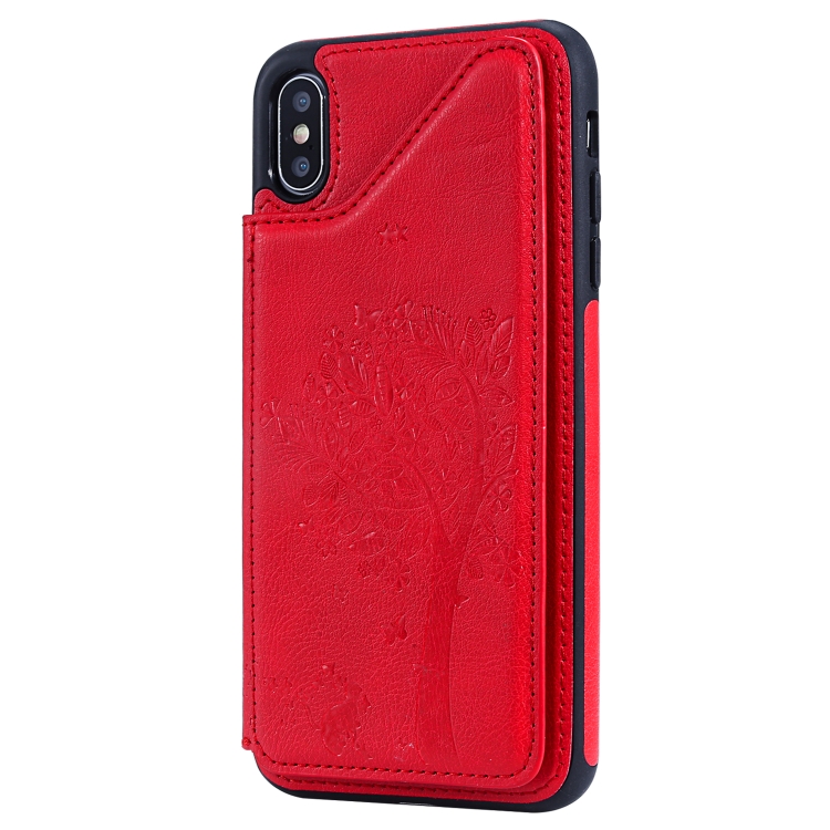 Estuche protector para iPhone Xs Max Cat Tree relieve patrón con ranuras para tarjetas y soporte (Rojo)