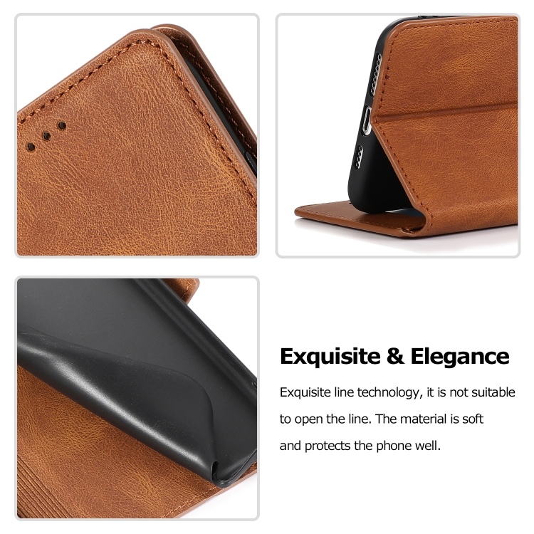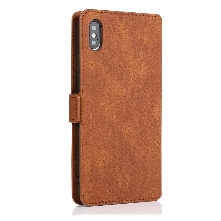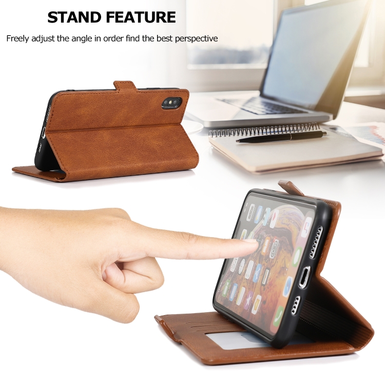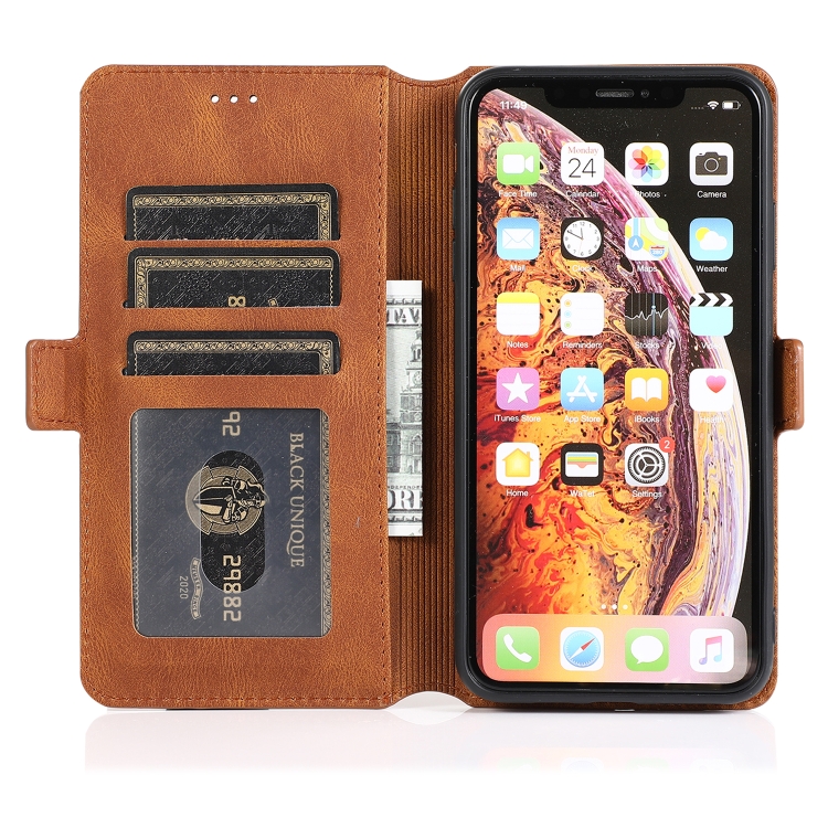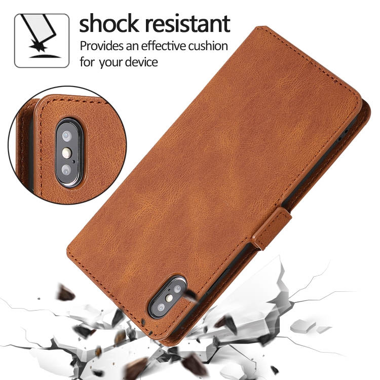 Estuche de Cuero para iPhone Xs Max Cierre Magnético Tapa Horizontal Soporte Ranuras Tarjetas Marco Fotos Billetera (Marrón)