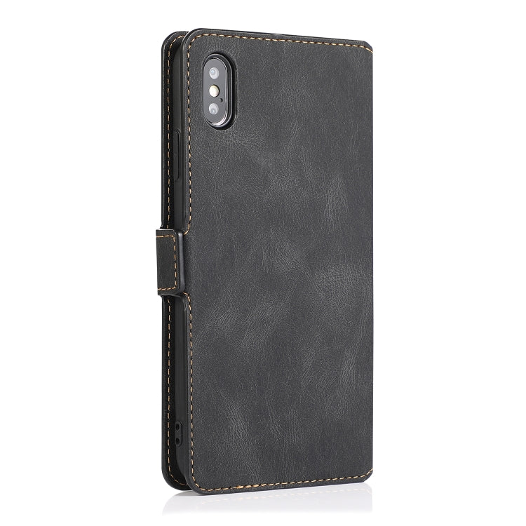 Estuche de Cuero para iPhone Xs Max Cierre Magnético Tapa Horizontal Soporte Ranuras Tarjetas Marco Fotos Billetera (Negro)