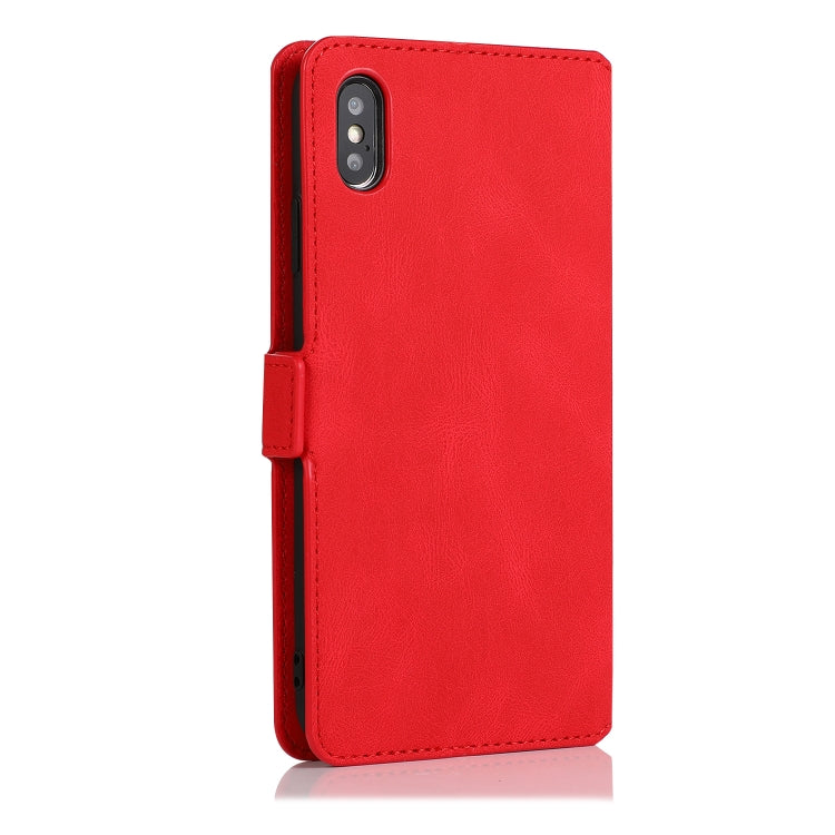 Estuche de Cuero para iPhone Xs Max Cierre Magnético Retro Tapa Horizontal Soporte Tarjetas Marco Fotos Billetera (Rojo)