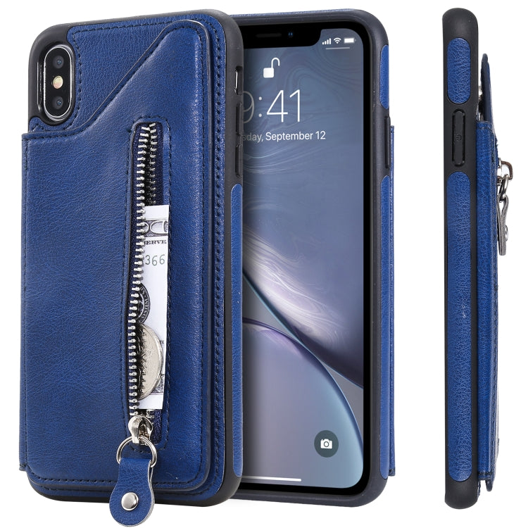 Funda Protectora para iPhone Xs Max Doble Hebilla Cremallera a Prueba de Golpes (Azul)