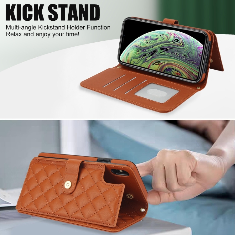 Funda para Teléfono iPhone Xs Max Crossbody Cuero Rómbico Multifunción (Marrón)