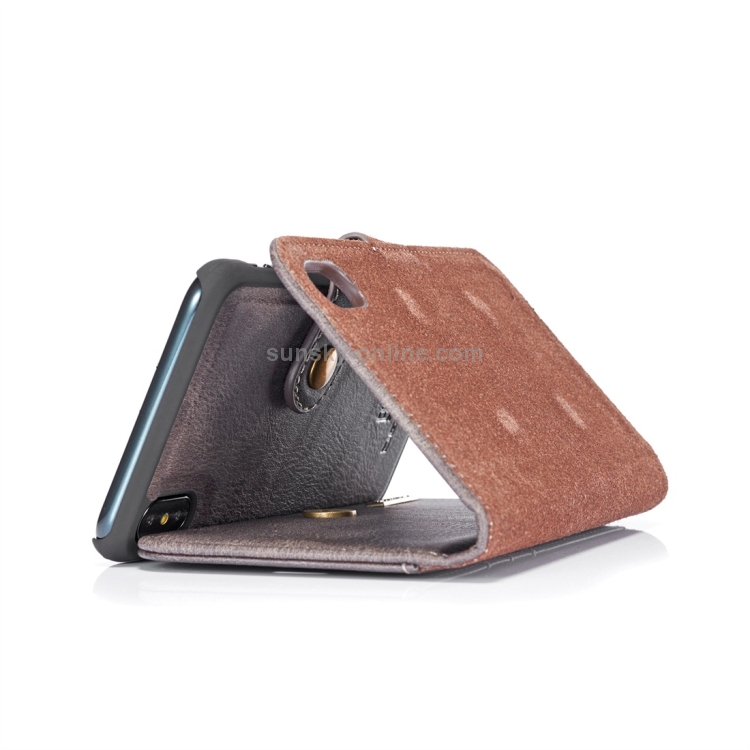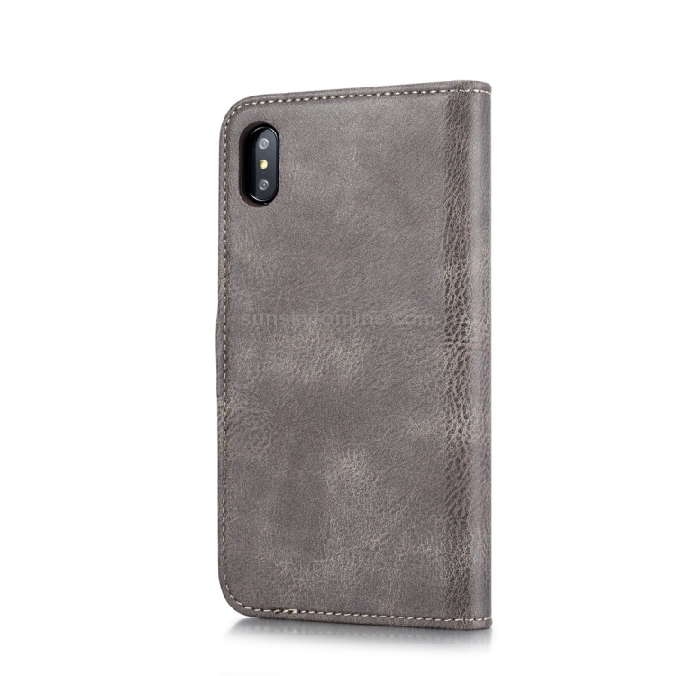 Estuche para iPhone Xs Max Dg.Ming Crazy Horse Texture Flip de Cuero Magnético Desmontable con Soporte y Ranuras para Tarjetas y Billetera (Gris)
