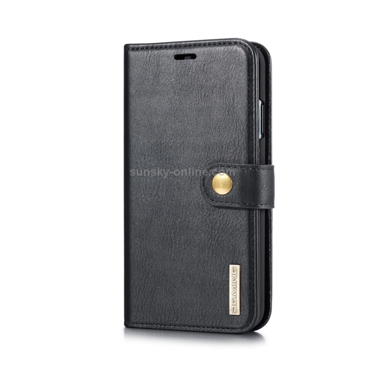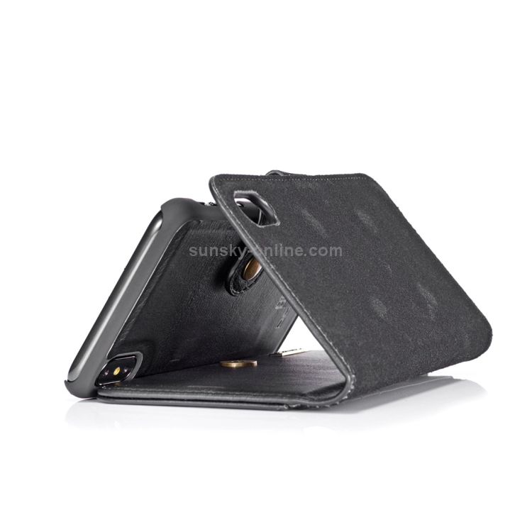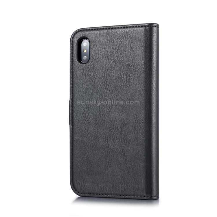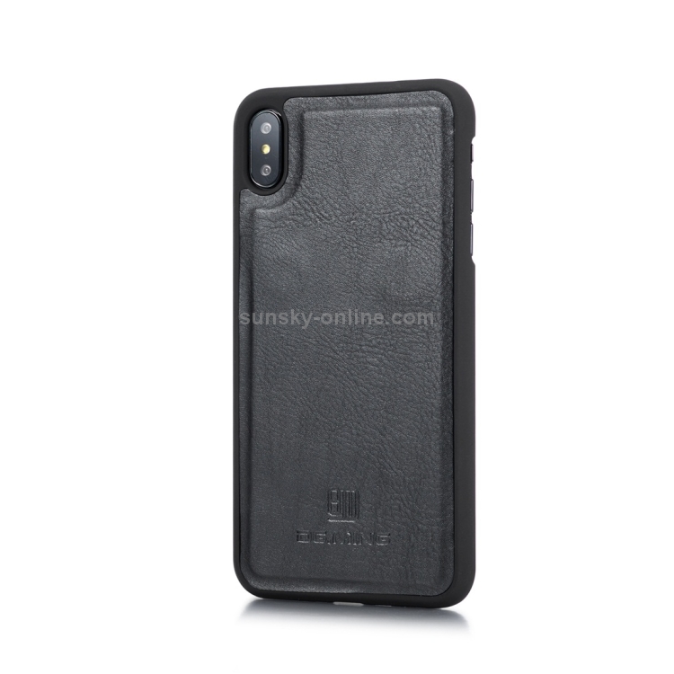 Estuche flip de cuero Dg.Ming para iPhone Xs Max con textura Crazy Horse, magnético, desmontable, soporte y ranuras para tarjetas (Negro)