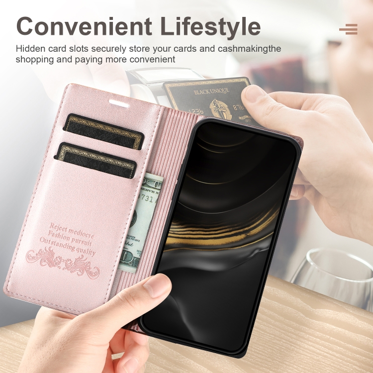 Funda para iPhone Xs Max Dream Succión Magnética Cuero de PU con Tapa Horizontal Soporte y Ranura para Tarjeta y Billetera (Oro Rosa)