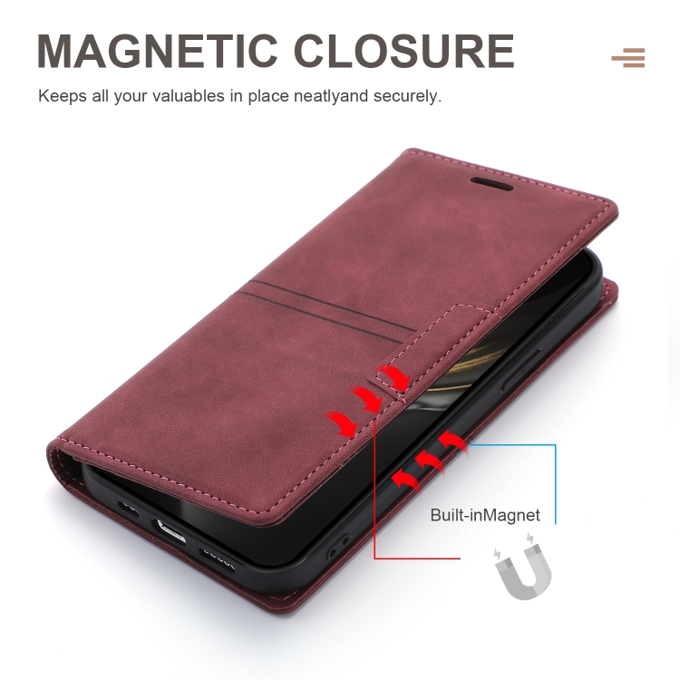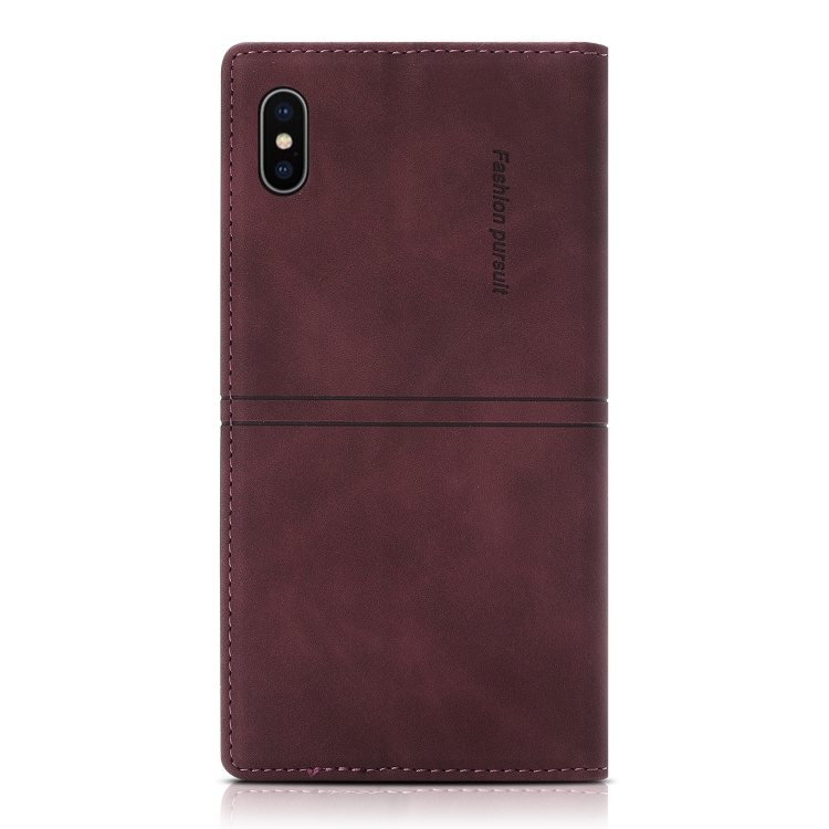 Funda para iPhone Xs Max Dream Succión Magnética Business Cuero de Pu Tapa Horizontal Soporte Ranura Tarjeta Billetera (Rojo Vino)