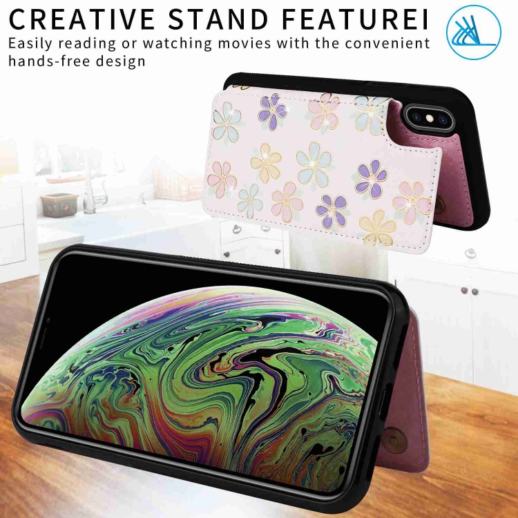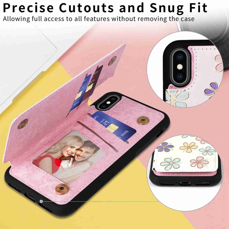 Estuche Antirrobo RFID para iPhone Xs Max con Doble Hebilla Impresa (Flores Florecientes)