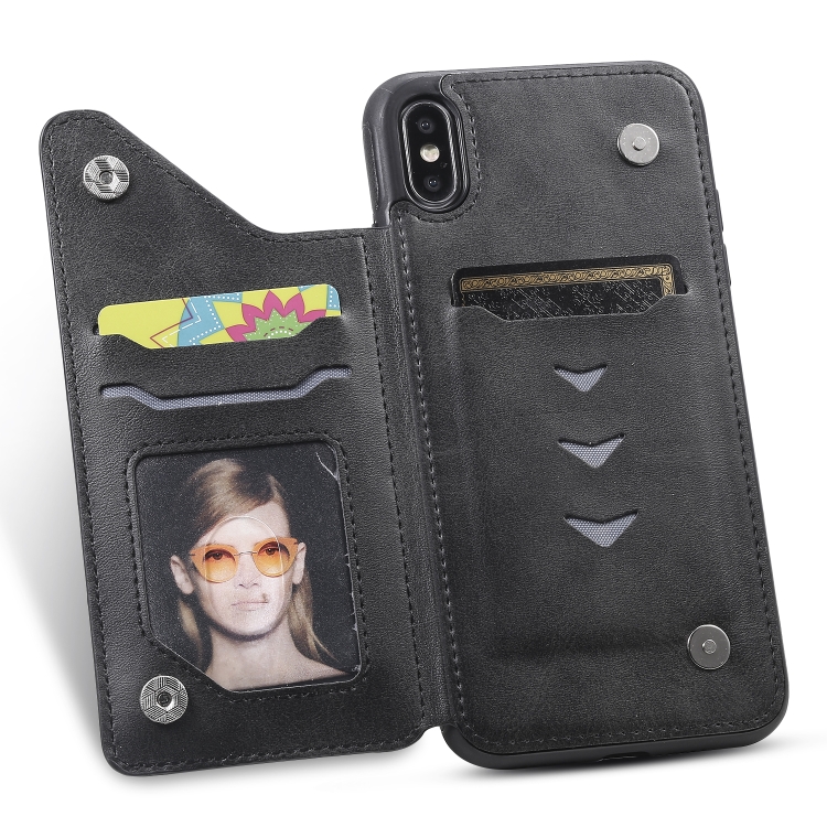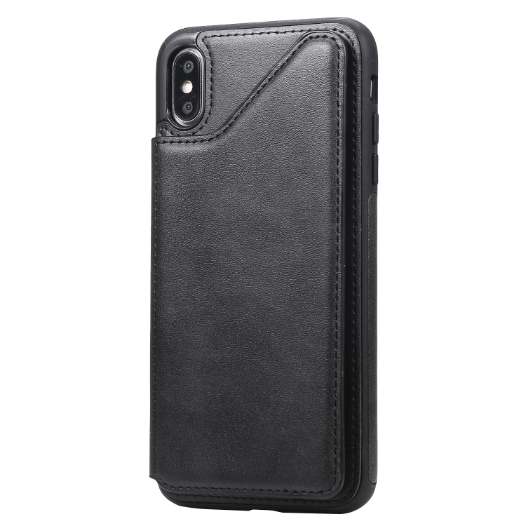 Estuche Protector para iPhone Xs Max Textura de Pantorrilla a Prueba de Golpes con Soporte y Ranuras para Tarjetas (Negro)