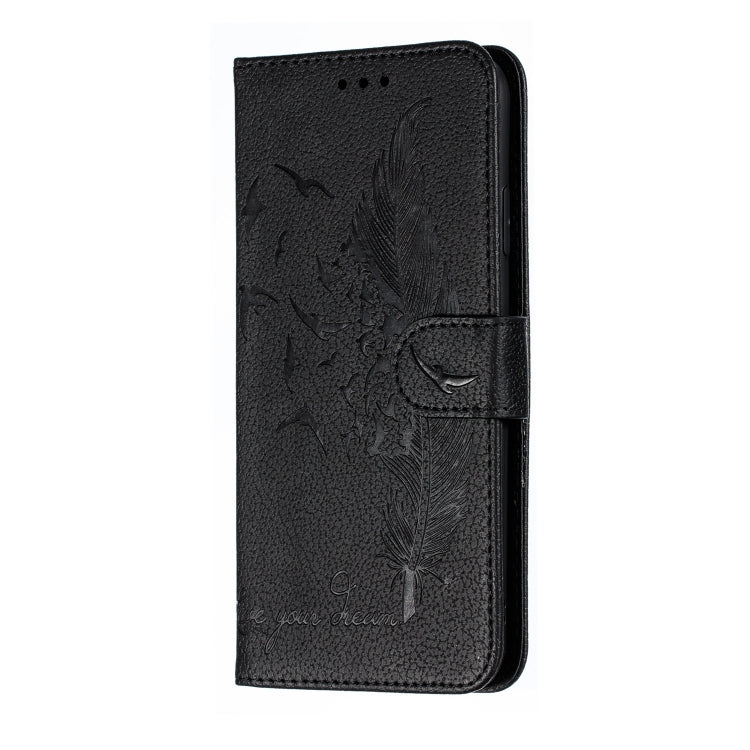 Funda de cuero iPhone Xs Max Feather Pattern con tapa horizontal billetera soporte y ranuras para tarjetas (Negro)