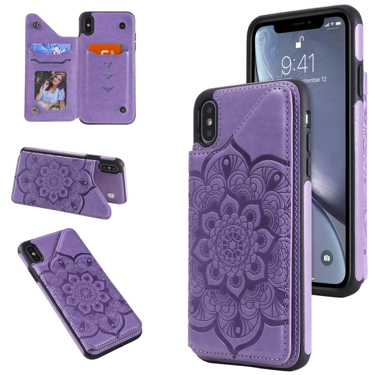 Estuche Protector para iPhone Xs Max Flower Embossing Pattern a Prueba de Golpes con Soporte y Ranuras para Tarjetas (Púrpura)
