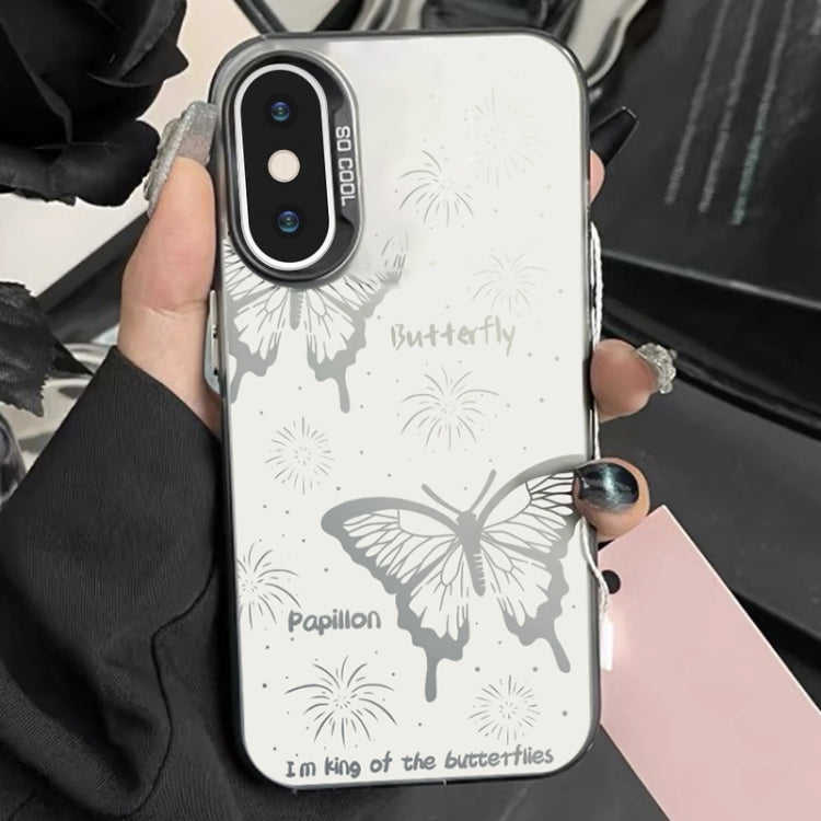 Funda híbrida para iPhone Xs Max TPU con pintura plateada y diseño mariposa hueca negra