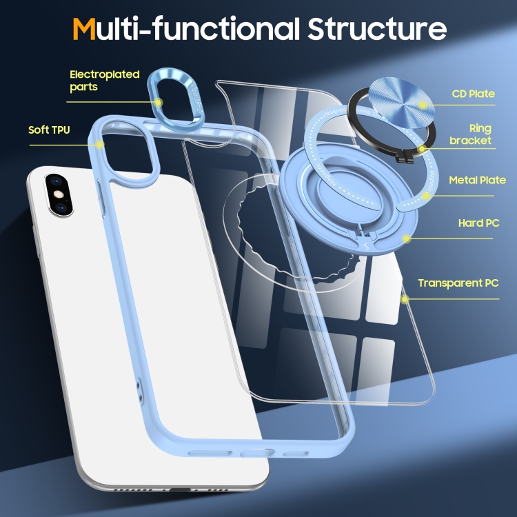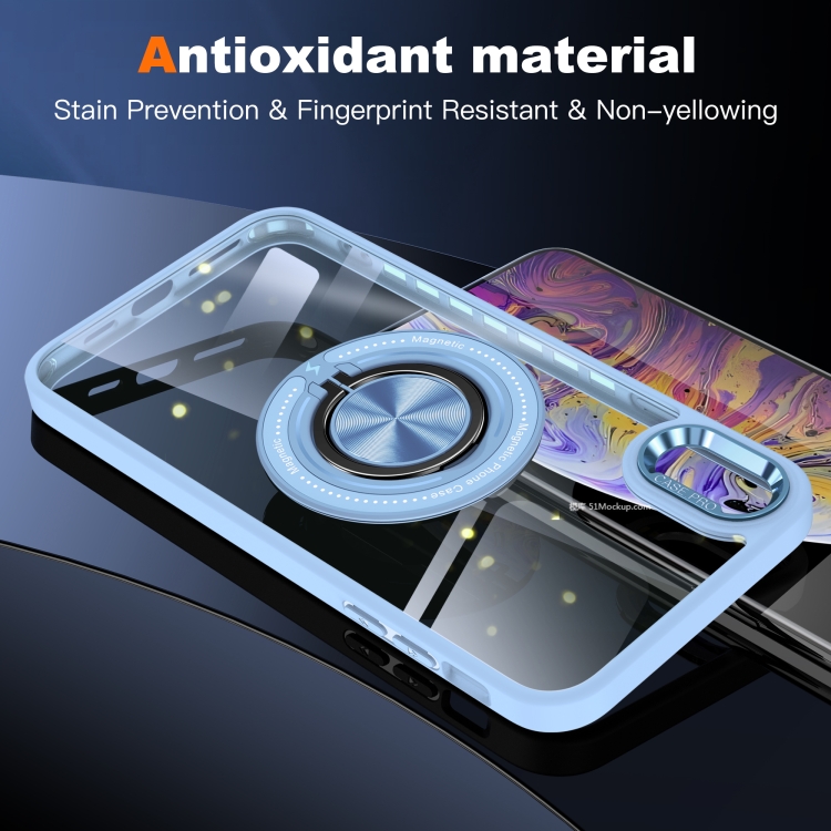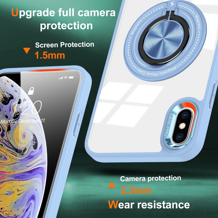 Funda para Teléfono iPhone Xs Max con Soporte de Anillo Giratorio Magnético (Azul Claro)