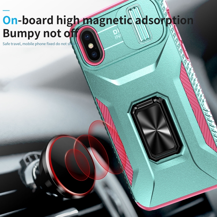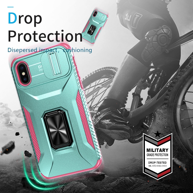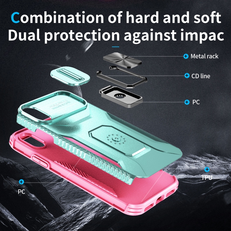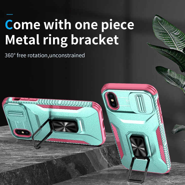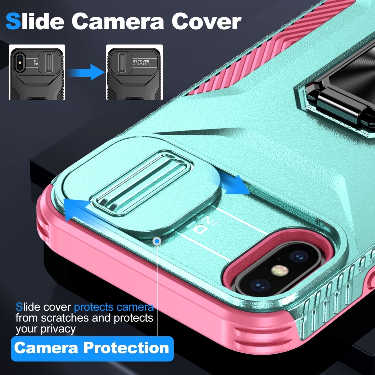 Funda para Teléfono iPhone Xs Max con Soporte Deslizante Camshield (Gris Verde + Rosa)