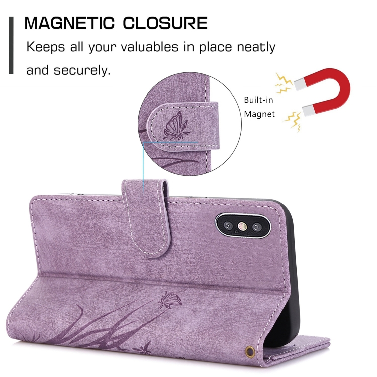 Funda para Teléfono iPhone Xs Max Cuero con Relieve Mariposa Orquídea (Púrpura)