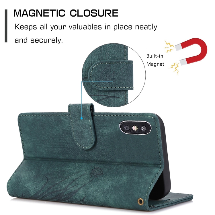 Funda para Teléfono iPhone Xs Max Cuero Relieve Mariposa Orquídea (Verde)