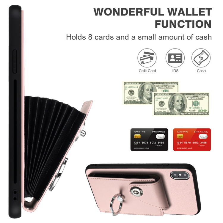 Funda para Teléfono iPhone Xs Max PU con Soporte Anillo Bolsa Tarjeta y Cordón (Rosa)