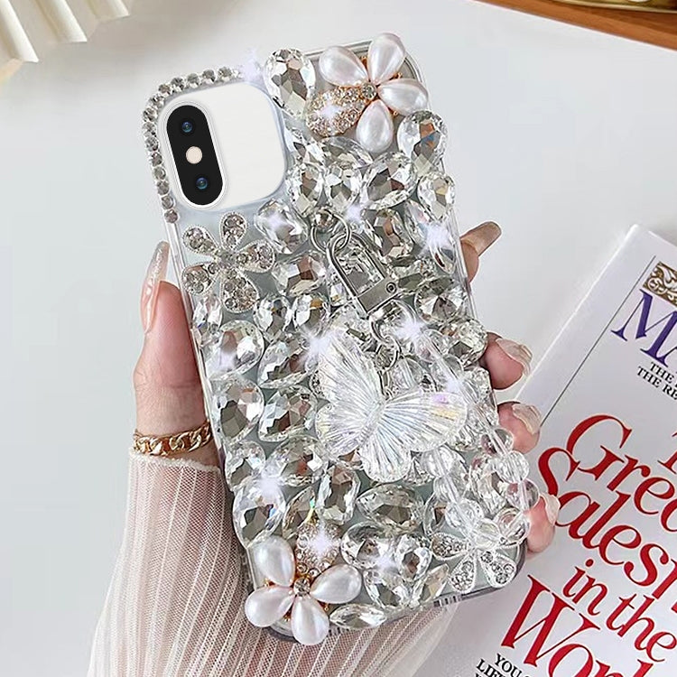 Funda para Teléfono iPhone Xs Max PC Incrustaciones Diamantes Mariposas (Blanco)