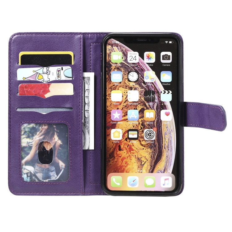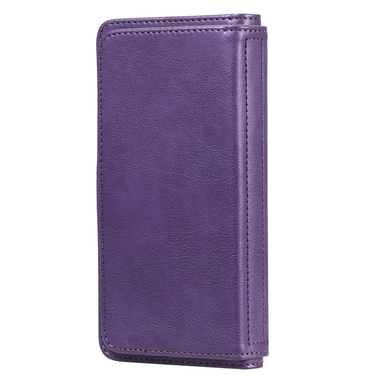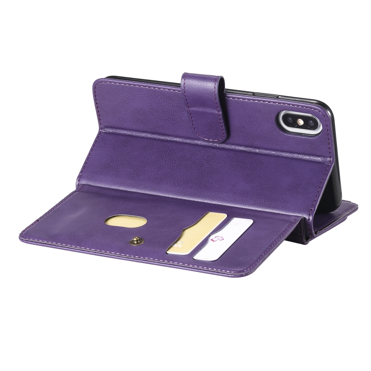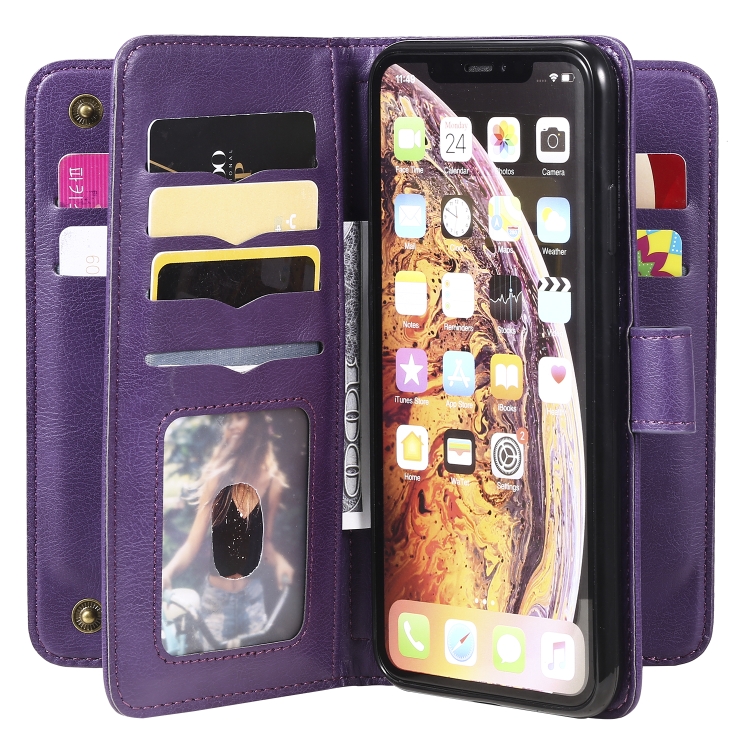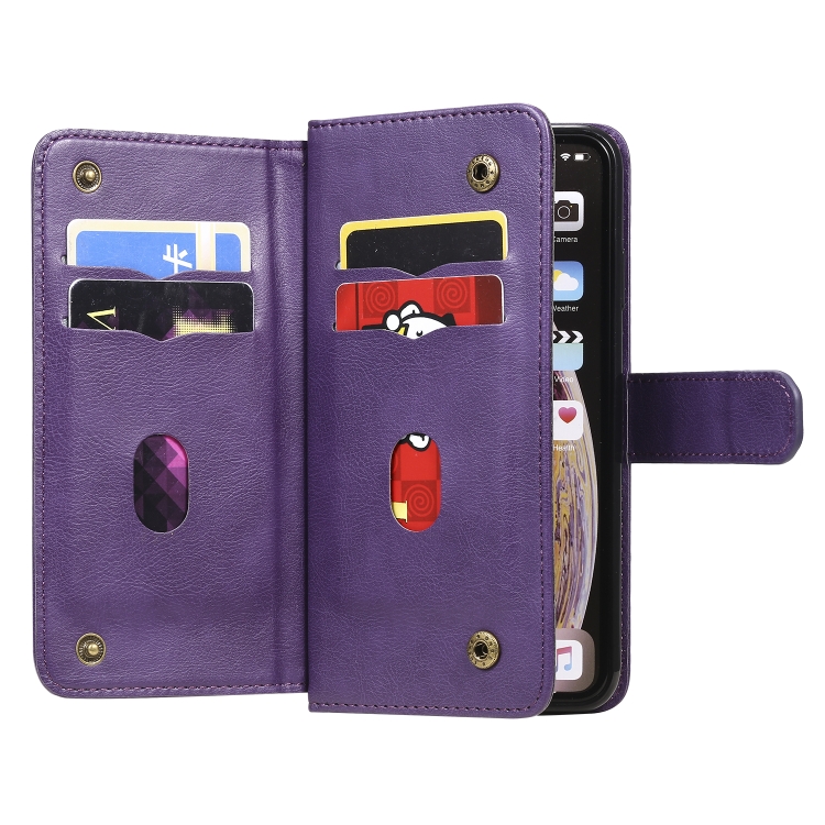 Funda para iPhone Xs Max Hebilla de Cobre Multifuncional Cuero con Tapa Horizontal y 10 Ranuras (Púrpura)