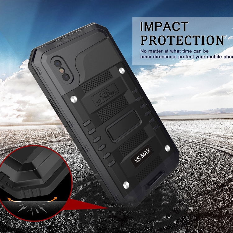 Carcasa Metal y Funda de Silicona para iPhone Xs Max con Protector de Pantalla (Negro)