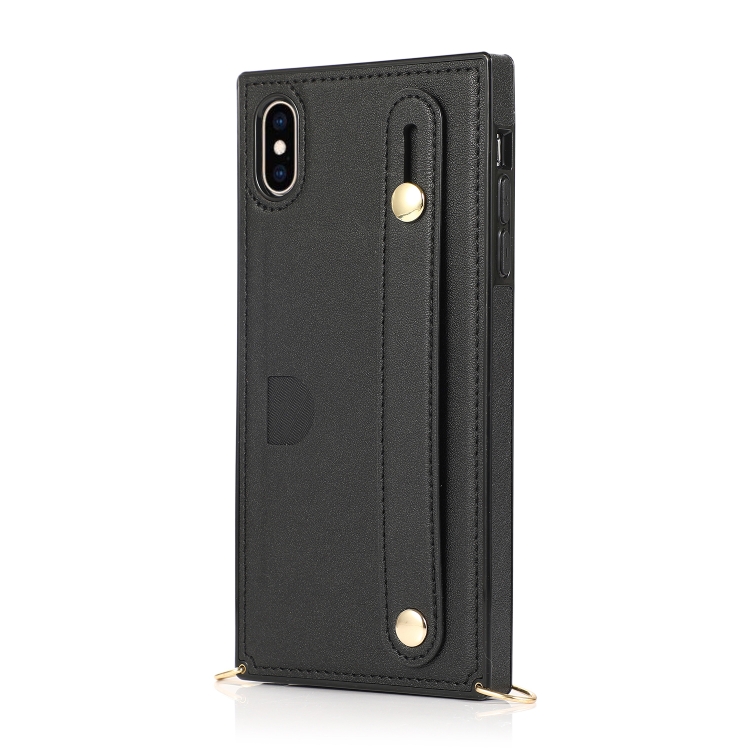 Estuche Protector para iPhone Xs Max Muñequera PU + TPU a Prueba de Golpes con Cordón Cruzado Soporte y Ranura para Tarjeta