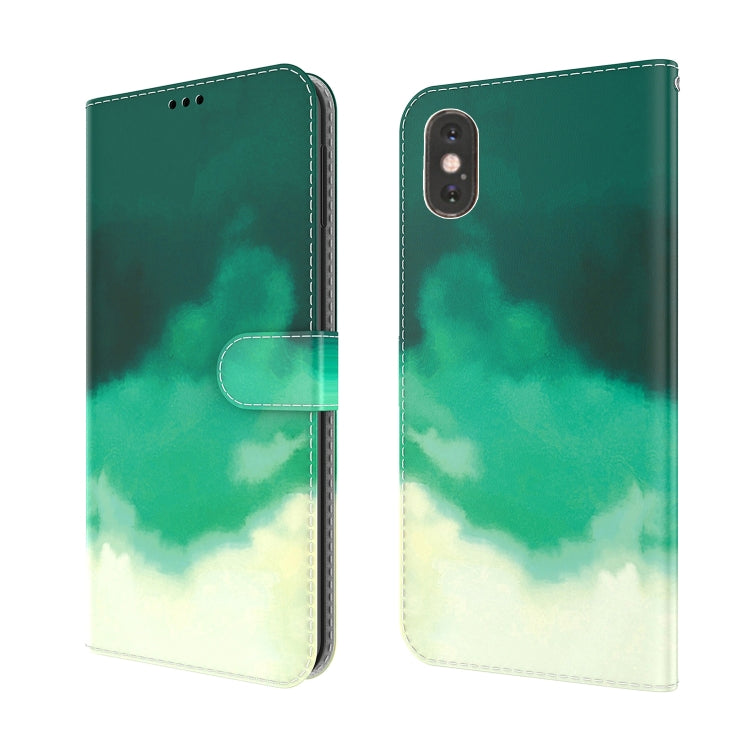 Estuche de Cuero para iPhone Xs Max con Patrón de Acuarela, Tapa Horizontal, Soporte, Ranura para Tarjeta y Billetera (Verde Cian)