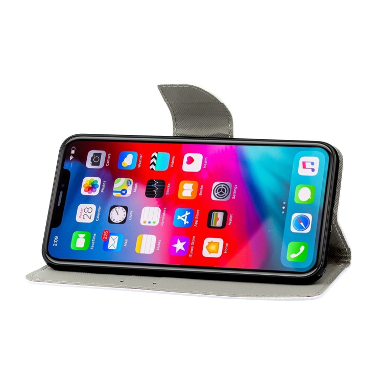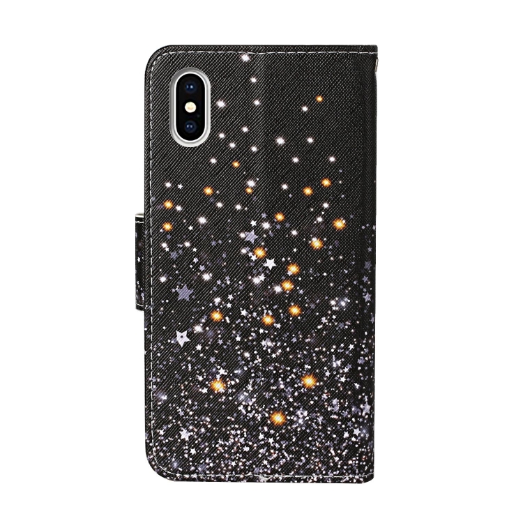 Estuche de cuero para iPhone Xs Max con patrón dibujo, tapa horizontal, soporte y ranuras para tarjetas (Estrella Negra de Cinco Puntas)
