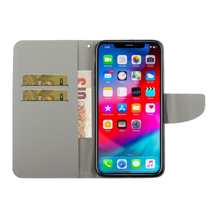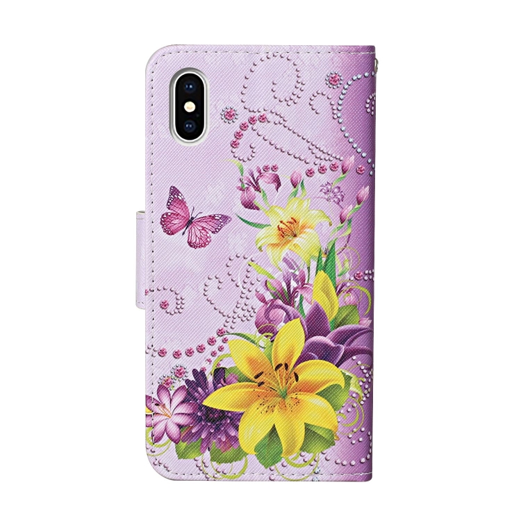 Estuche de Cuero para iPhone Xs Max Patrón de Dibujo con Tapa Horizontal Soporte Ranuras Tarjetas Billetera (Mariposa de Flor Amarilla)