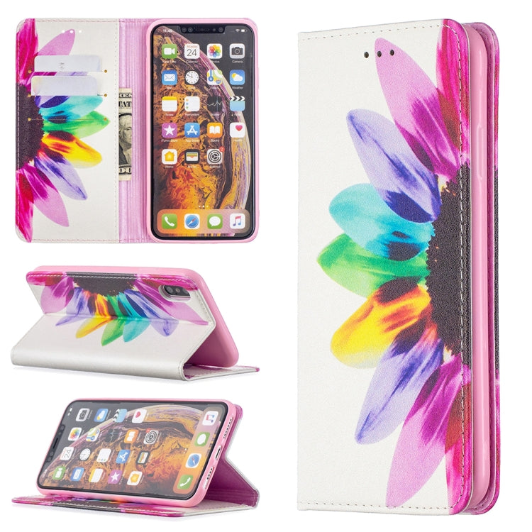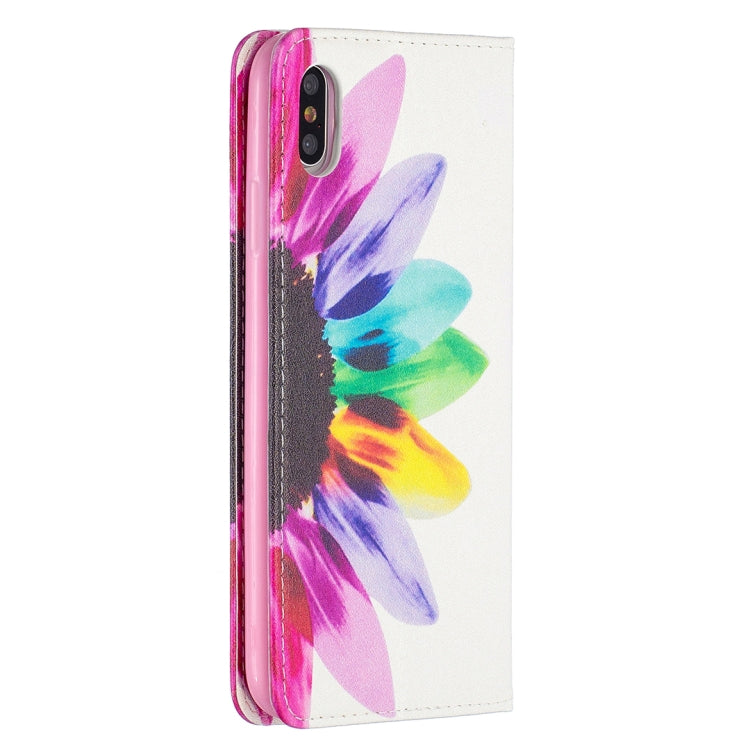 Estuche de Cuero de Pu para iPhone Xs Max con Patrón Flor del Sol, Tapa Horizontal Magnética, Soporte y Ranuras para Tarjetas