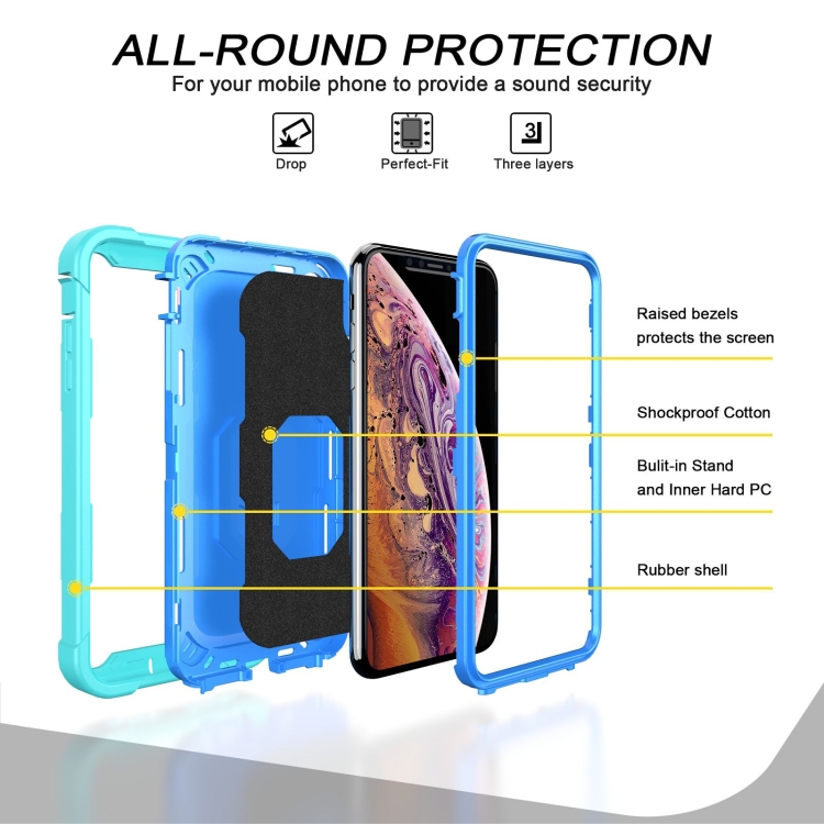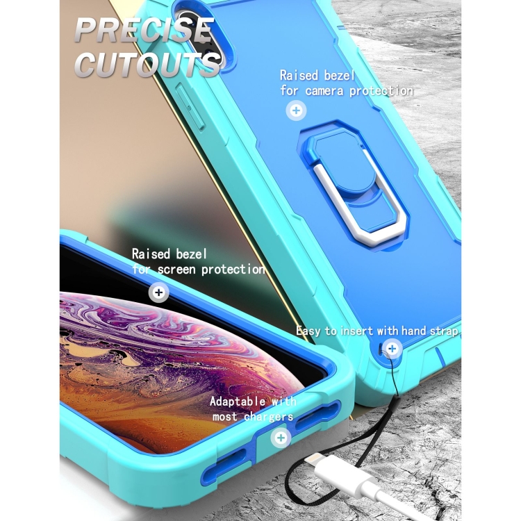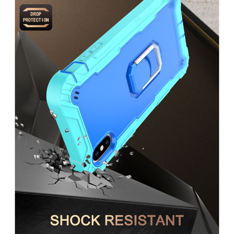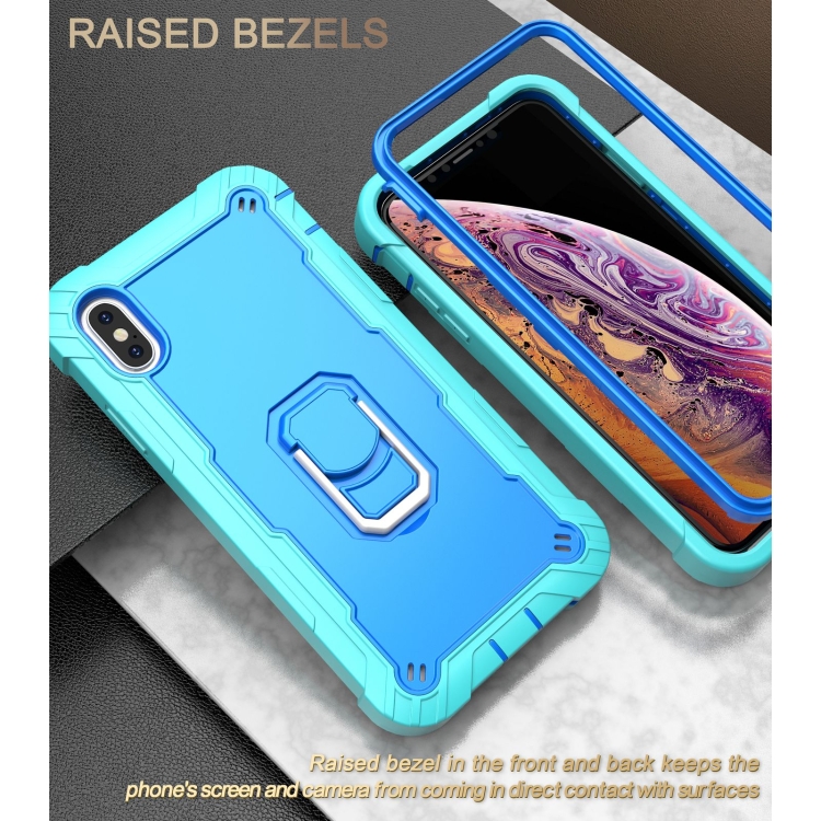 Funda Protectora para iPhone Xs Max PC + Goma 3 Capas Antigolpes con Soporte Giratorio (Verde Menta + Azul)