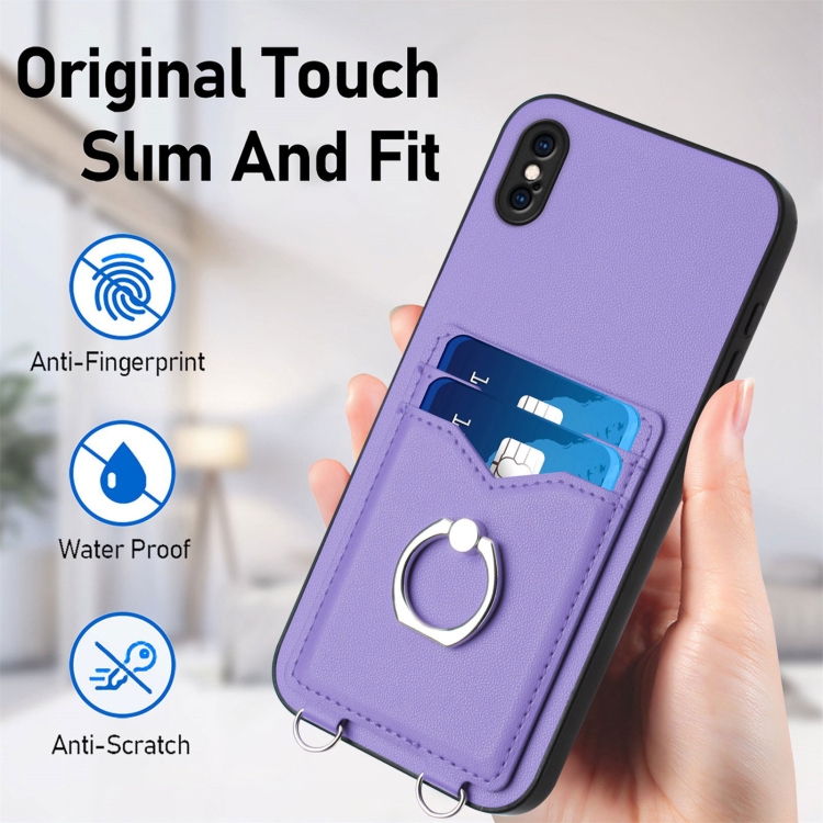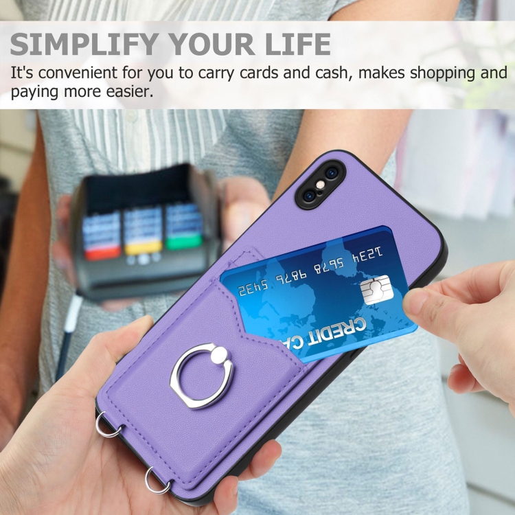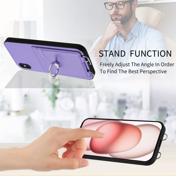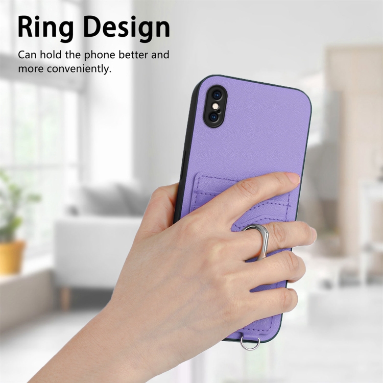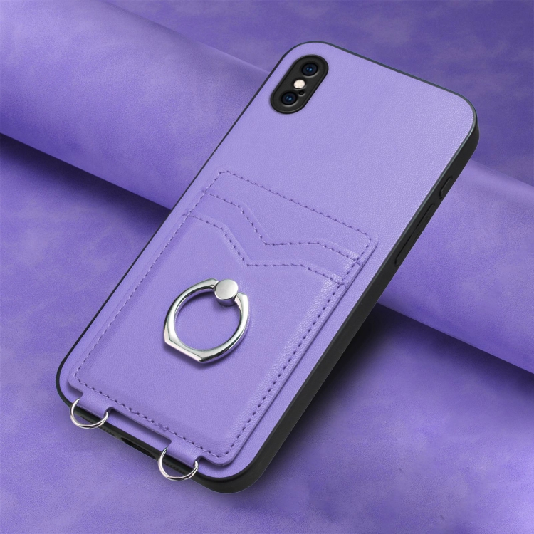 Estuche para Teléfono iPhone Xs Max R20 Soporte Tarjeta Anillo (Púrpura)