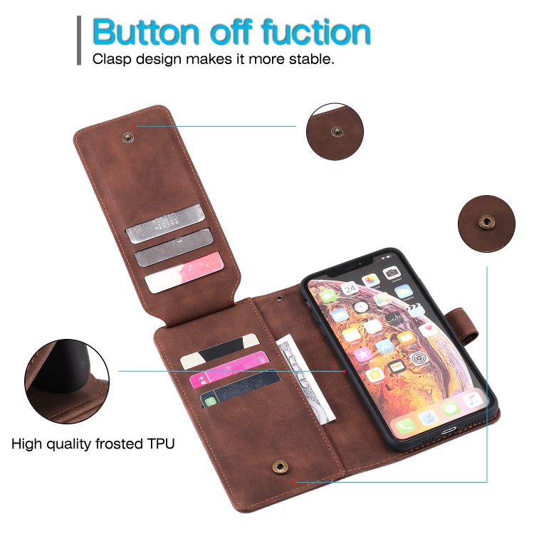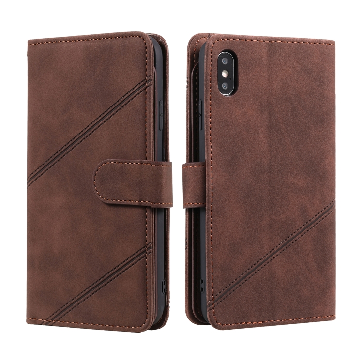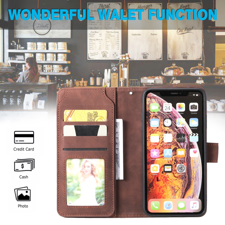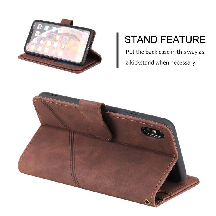 Estuche para iPhone Xs Max Skin Feel Business de Cuero PU con Tapa Horizontal, Soporte, Ranuras para Tarjetas, Billetera, Cordón y Marco de Fotos (Marrón)