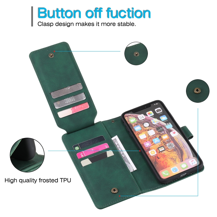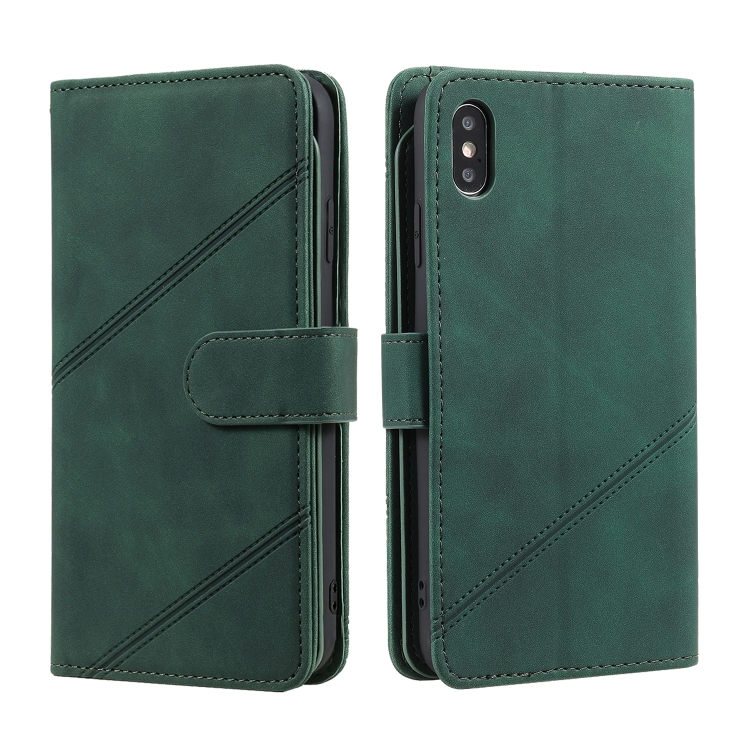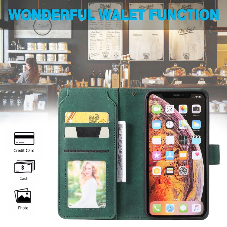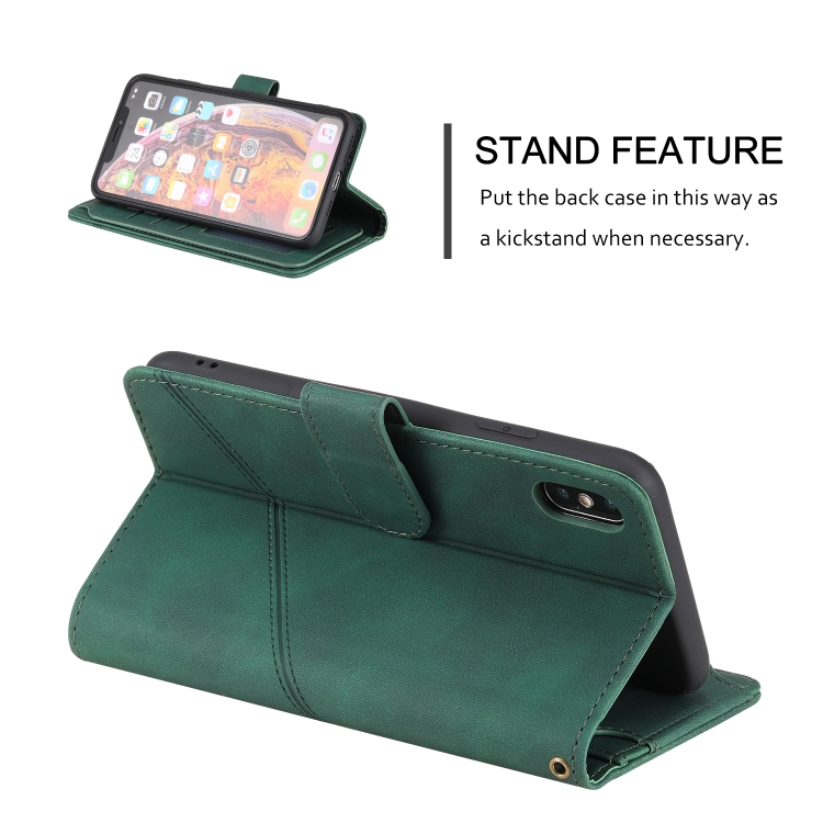 Estuche para iPhone Xs Max Skin Feel Business de Cuero PU con Tapa Horizontal Soporte Ranuras Tarjetas Billetera Cordón Marco Fotos (Verde)