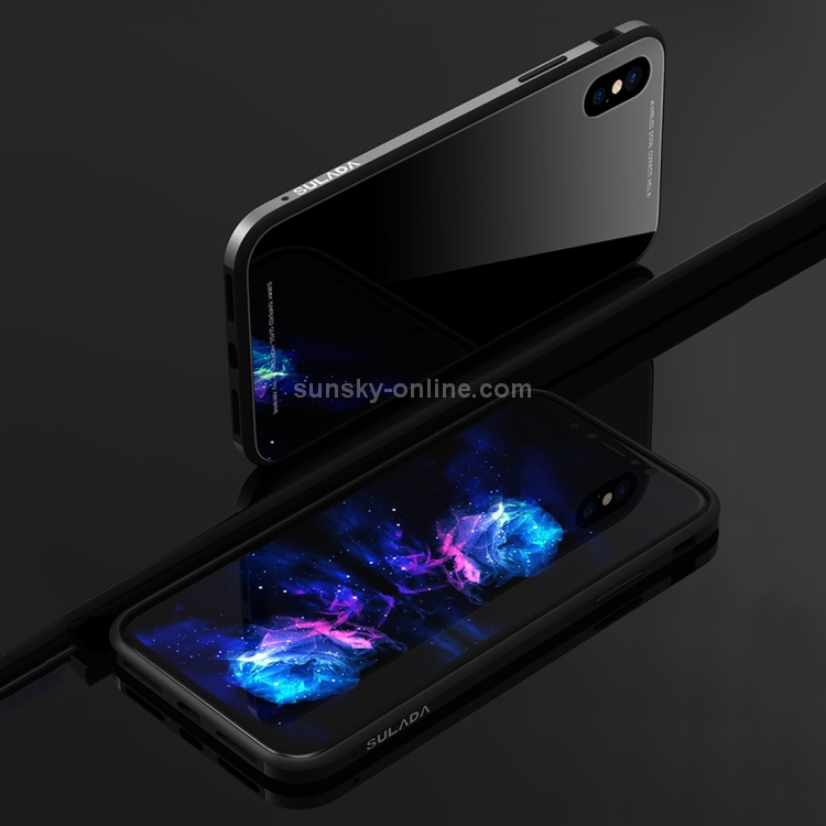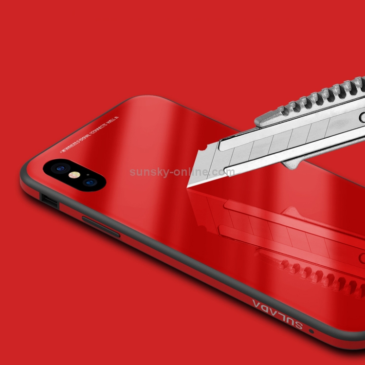 Caja de Vidrio Templado para iPhone Xs Max Sulada Marco de Metal (Rosa)