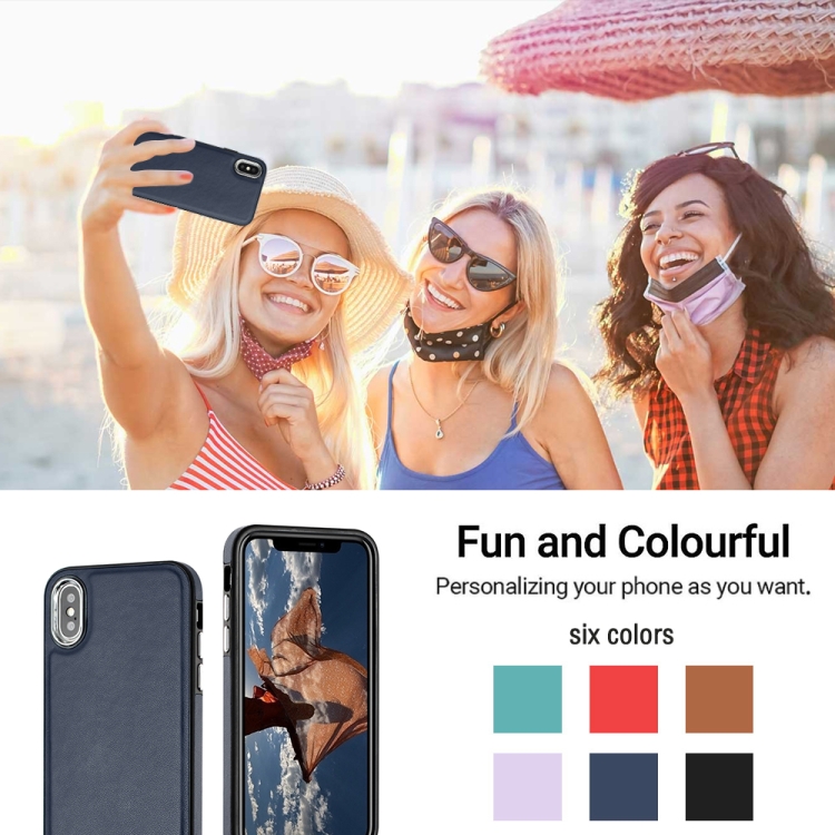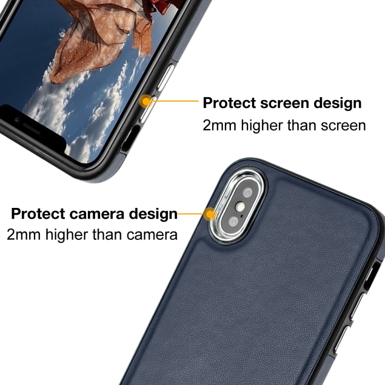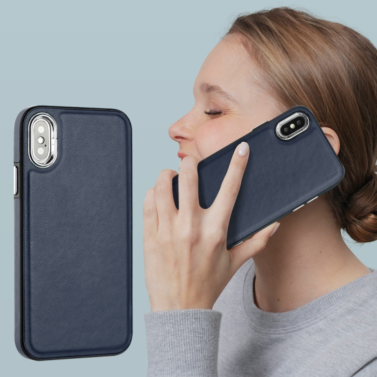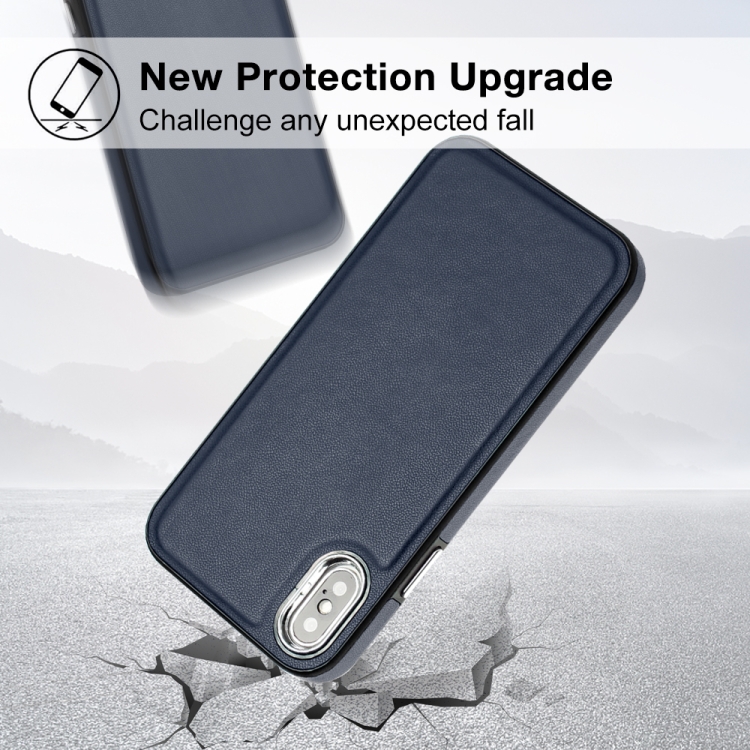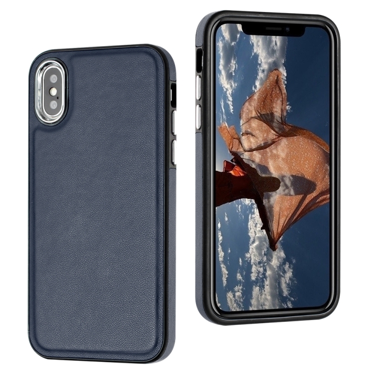 Funda para Teléfono iPhone Xs Max Textura de Cuero Cobertura Completa (Azul)