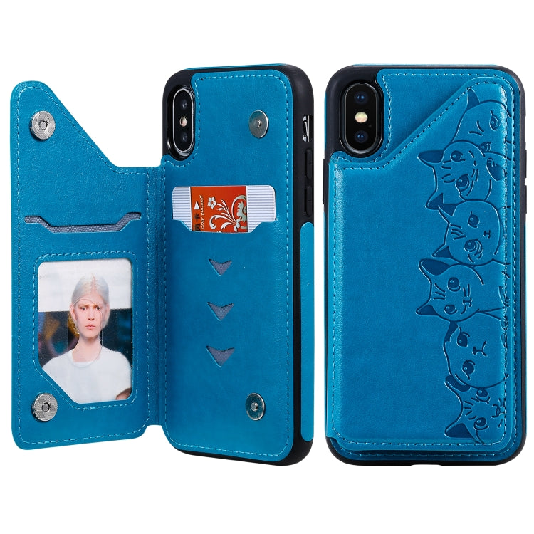 Estuche Protector Six Cats para iPhone Xs con Patrón de Relieve Soporte Ranuras para Tarjetas y Marco de Fotos (Azul)